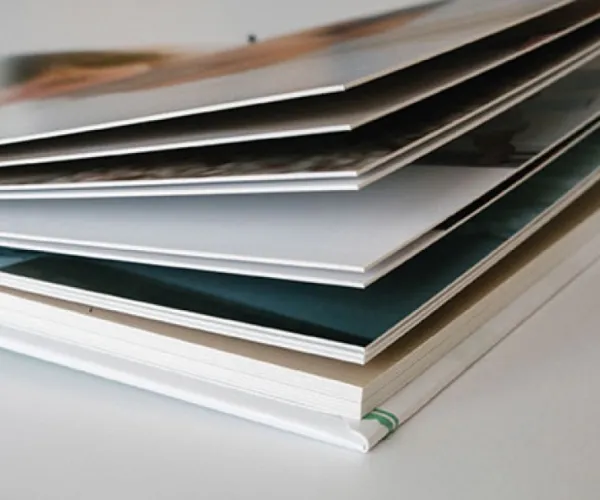Nos álbuns de fotos com as folhas finas, as páginas possuem uma gramatura de 400g. As folhas são encadernadas umas às outras, tornando-as mais finas e flexíveis, assemelham-se mais às páginas de um livro, mas mantendo toda a qualidade e resistência do papel fotográfico. E o resultado final é um Álbum de Fotos elegante.
