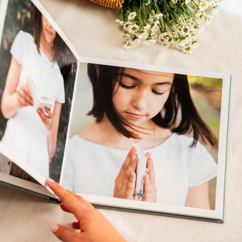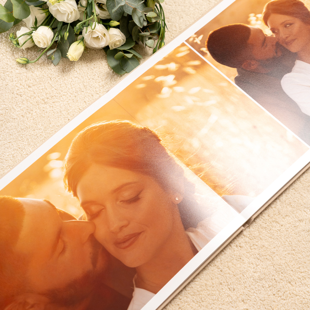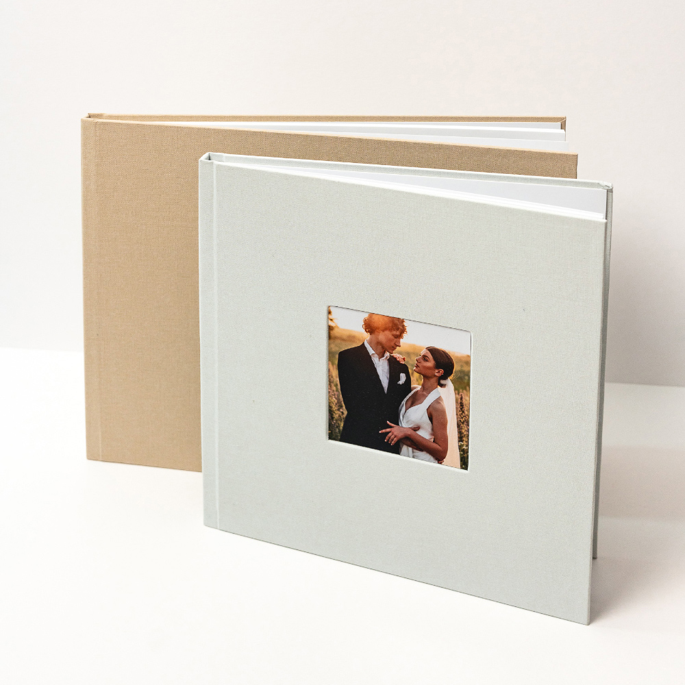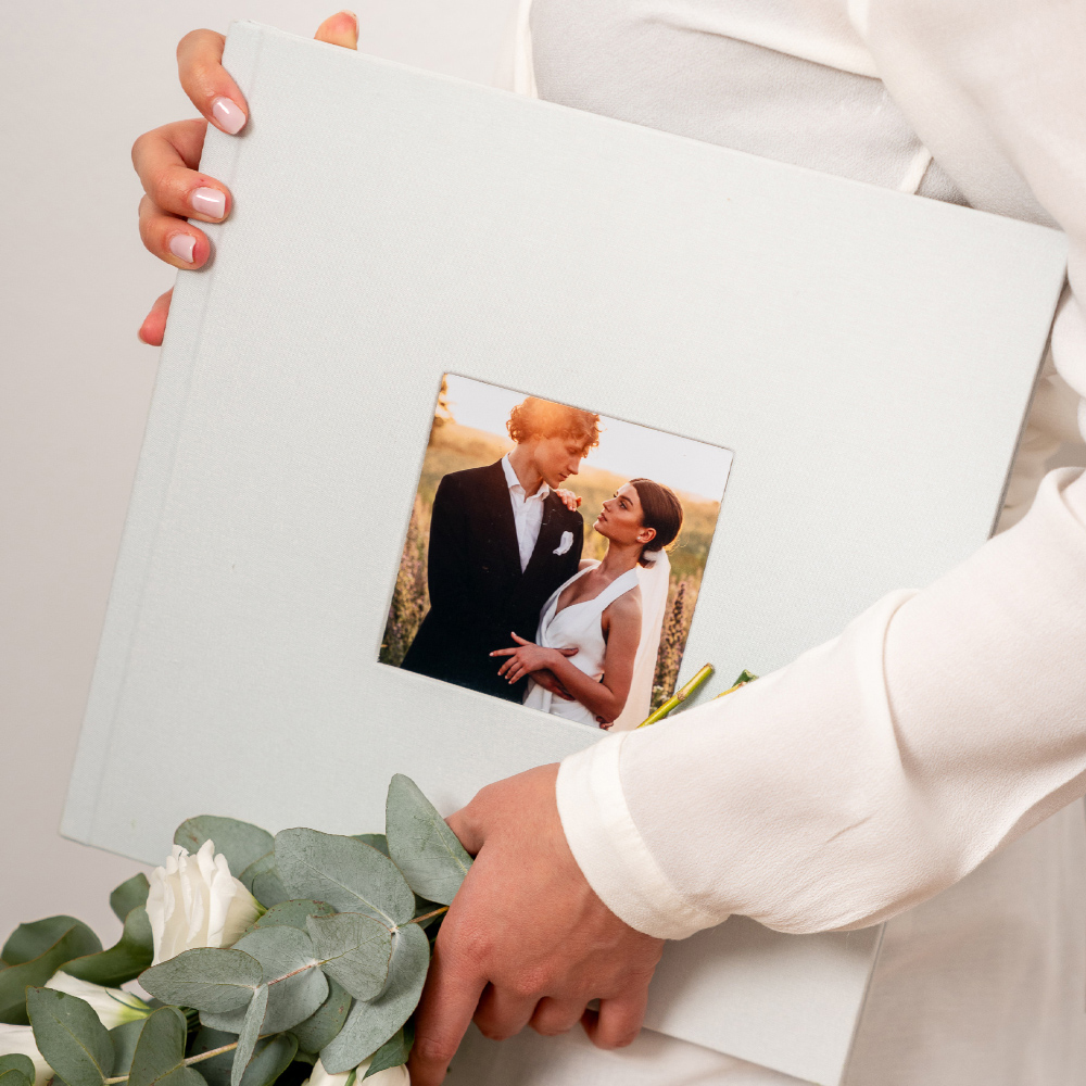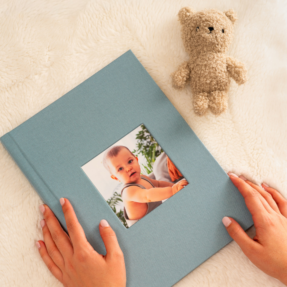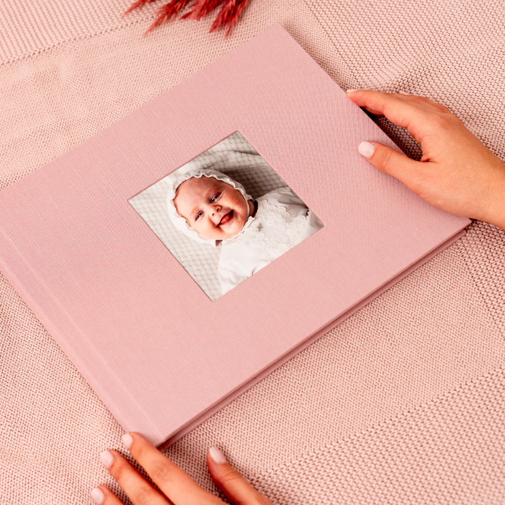 En el modelo Cameo, la portada se convierte en una ventana a la emoción. Tu fotografía favorita queda integrada de forma permanente en el tejido, creando un ligero relieve que la transforma en el corazón del álbum, un detalle que invita a descubrir las memorias que esconde en su interior.