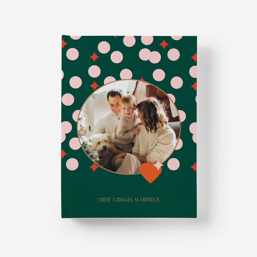 A capacidade varia conforme a personalização, mas acomoda até 40 páginas decoradas.