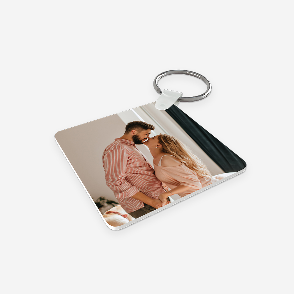 Com formato quadrado e personalização total (100%) em ambas as faces, este porta-chaves transforma qualquer foto ou frase num presente romântico e inesquecível.